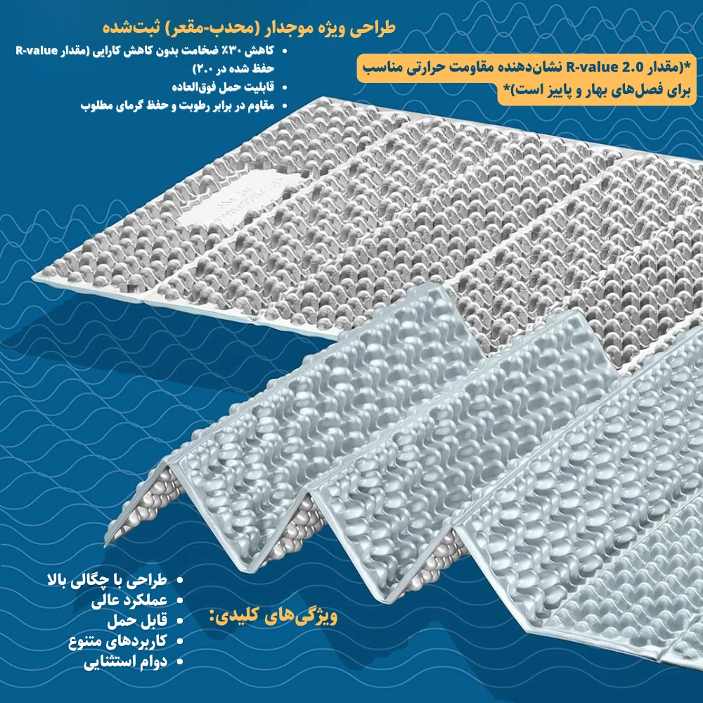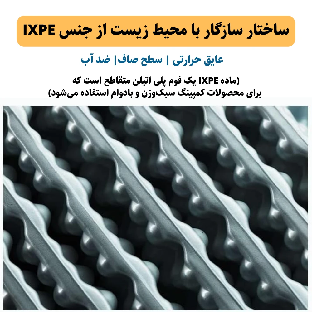 ساختار اصلی زیرانداز کیسه خواب کوهنوردی مونتین اسپرینگ مدل C3_L، از فوم IXPE با چگالی بهینه، و پوششی از روکش آلومینیومی بازتابنده با طراحی آکاردئونی با قابلیت جمع شوندگی سریع است.