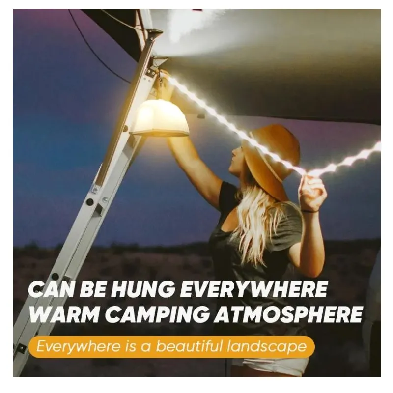 چراغ چادر ریسه ای شارژی مدل KXK_505، با طراحی پیشرفته یک گزینه ی مناسب برای نورپردازی در طبیعت و کمپینگ و سفرهای ماجراجویانه ی همنوردان عزیز می باشد.