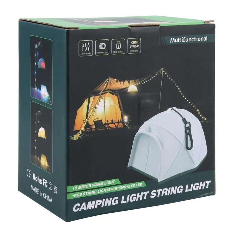 این چراغ چادر ریسه ای با 65 عدد LED و یک چراغ قوه ی XTE، روشنایی مطلوبی تا 300 لومنس برای فضای چادر و محیط اطراف ارائه می دهد.