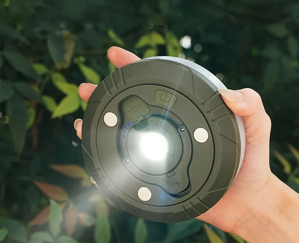 چراغ چادر ریسه ای VK_828n، با یک عدد LED XTE و نیز نیز یک عدد SMD، روشنایی مطلوبی تا 150 لومنس به فضای داخلی و اطراف چادر شما می دهد.