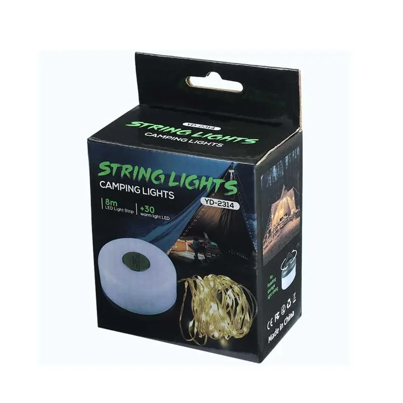 چراغ چادر مدل YD_2314 ریسه ای به طول 8 متر دارد که با قابلیت آویزان کردن، می توان از آن به عنوان چراغ چادر نیز بهره برد و یا به عنوان چراغ تزئینی در مهمانی ها استفاده کرد.