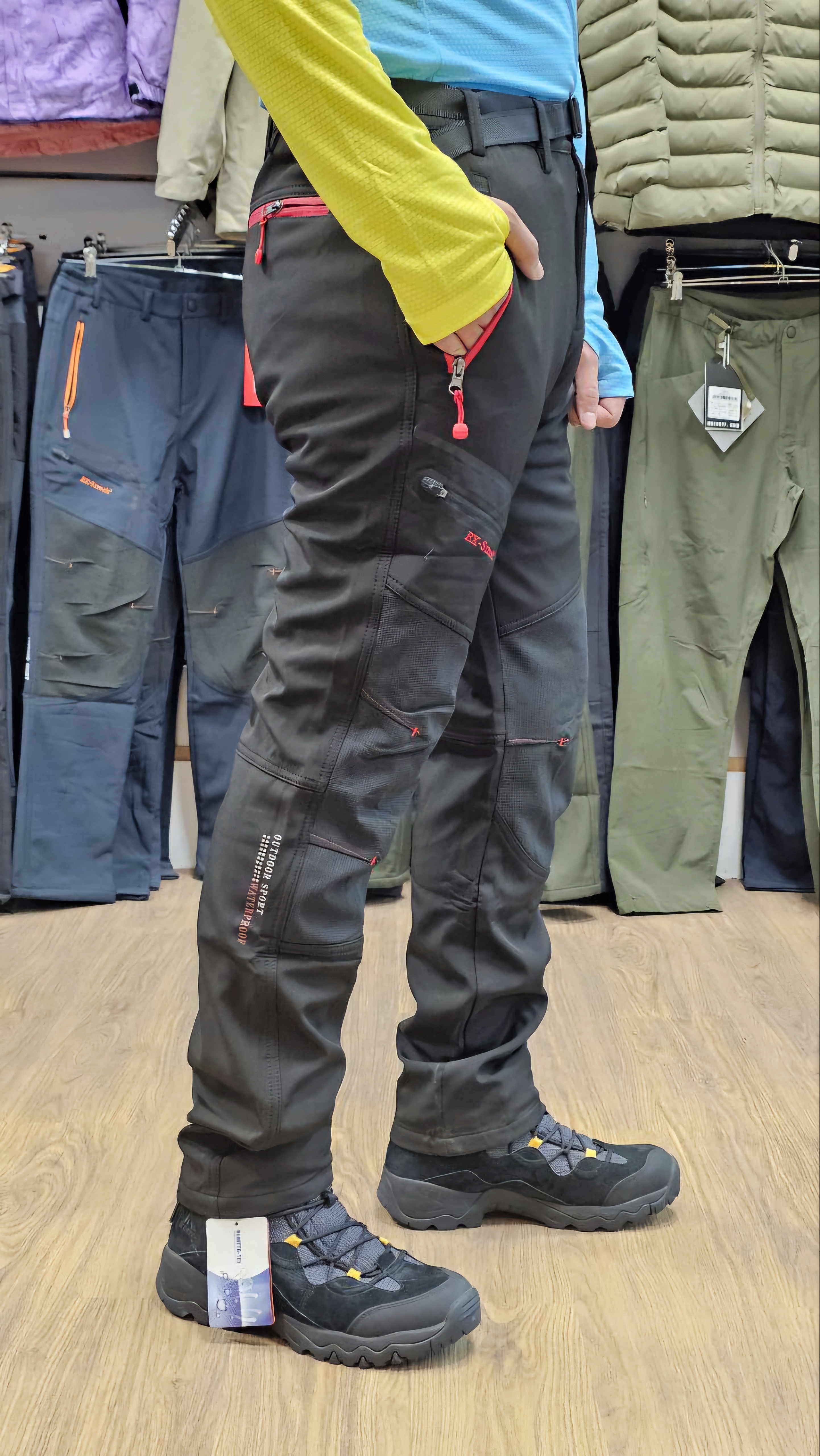 جنس پارچه ی شلوار کوهنوردی Out door وینداستاپر، Quick dry است که خاصیت آبگریزی و قابلیت خشک شوندگی سریع دارد.