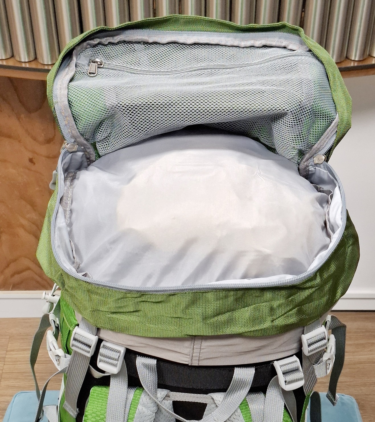 کوله پشتی کاراکال دارای جای کیسه خواب نیز می باشد که از طریق یک دیافراگم زیپ دار می توانید این قسمت را از فضای داخلی جدا سازید.